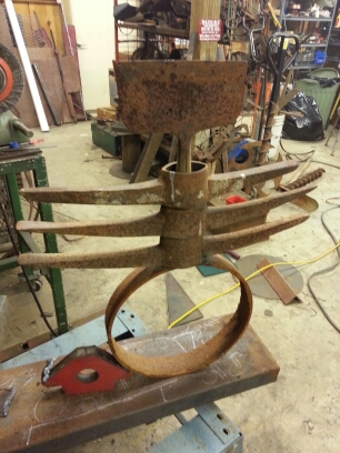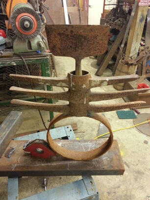 Pick axes, an edger and a remnant ring came together prett well in a totem type piece. Working on base next. Happy with it so far.