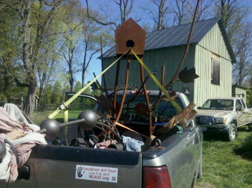 Deliver sculpture to Millwood for the spring show. Brought my Fish and Face as well as Mike Clay's awesome Birdhouse pieces and Helix...