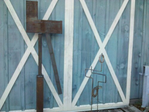 Bottle Tree construction underway. 80 feet of rebar, 30 cuts, a bunch of bending and lots of welding make up this Bottle Tree. Holds 22 bottles. Will update with bottles on it soon....got some drinking to do.