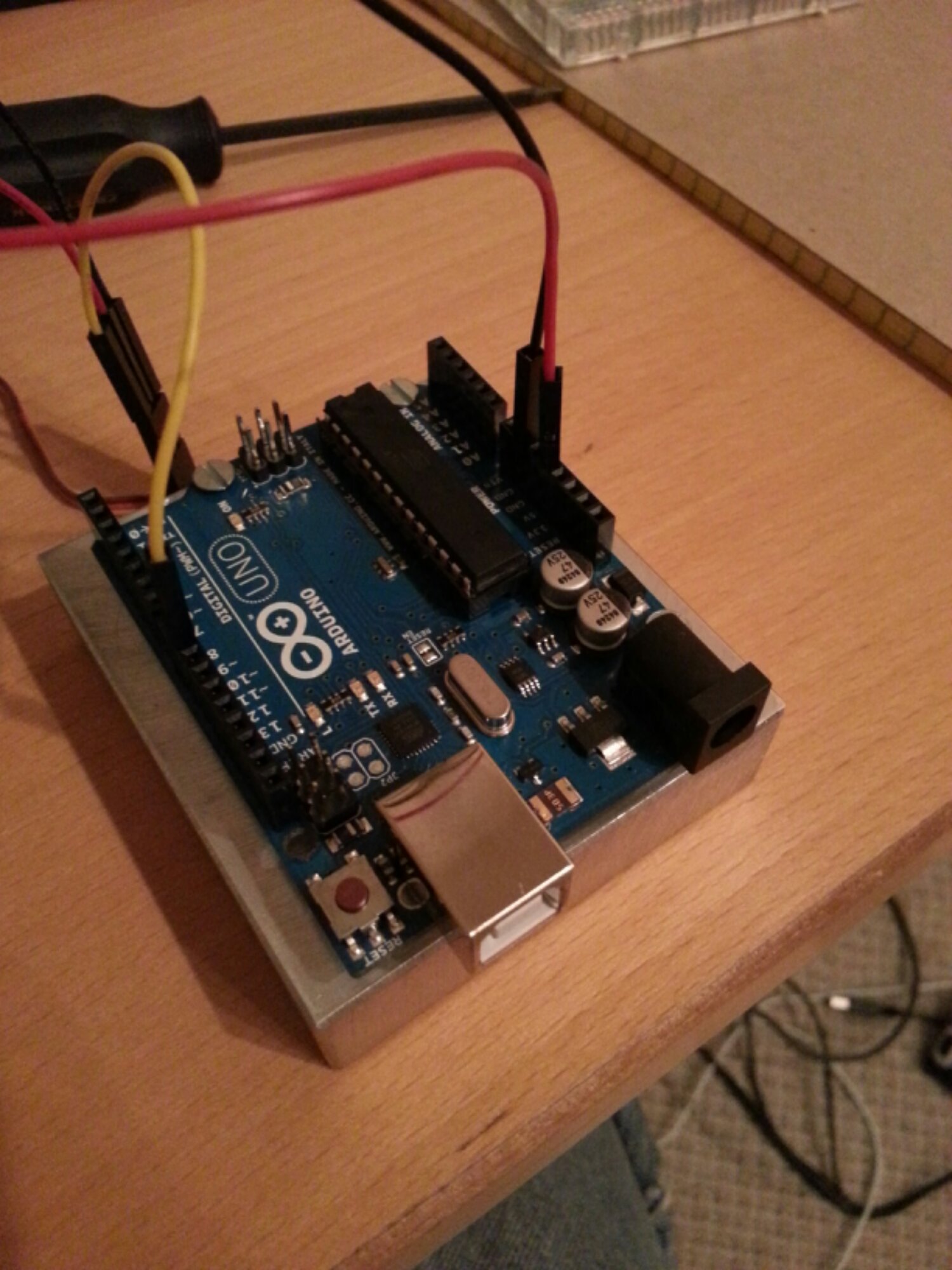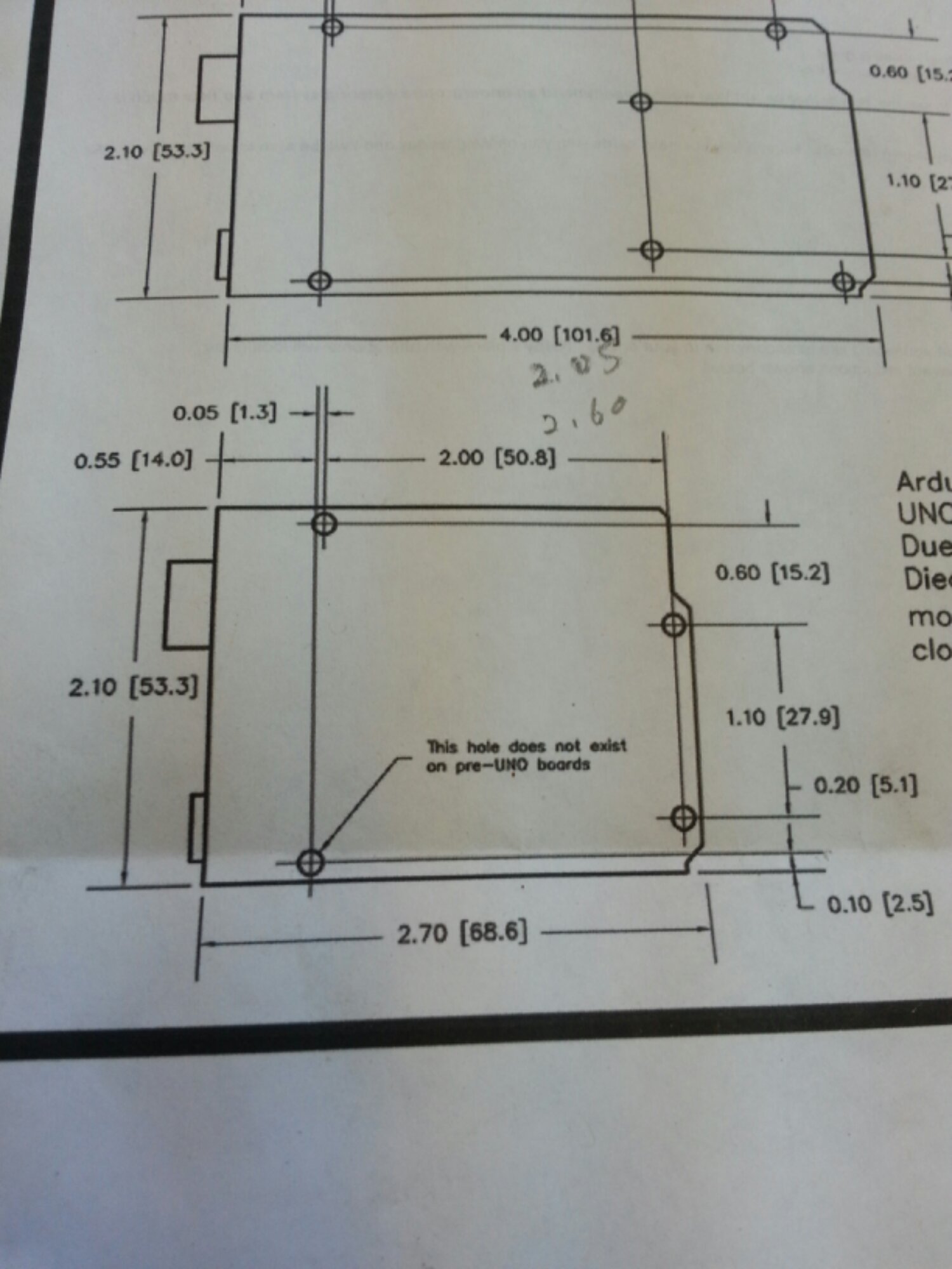 I immediately noticed that a solid case and or mount was in order to prevent it from slipping all over the place while working with it. Pretty sure the USB Cable weighs more than the board. Thanks to adafruit I was able to get the Arduino Hole Dimension Drawwing and build a block out of some scrap aluminum I had laying around.