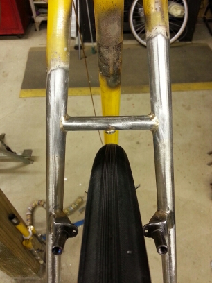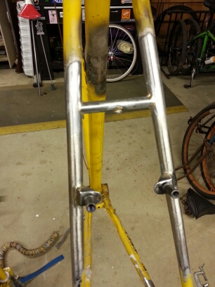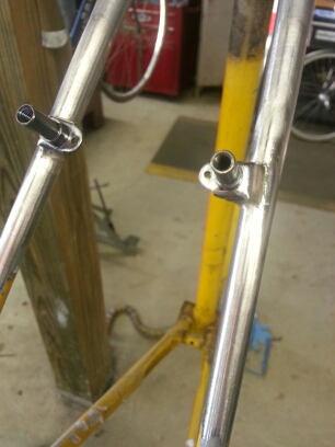 Completed the replacement of the brake bridge with a fender bridge/bracket. Used a water bottle brazon to attach the fender.