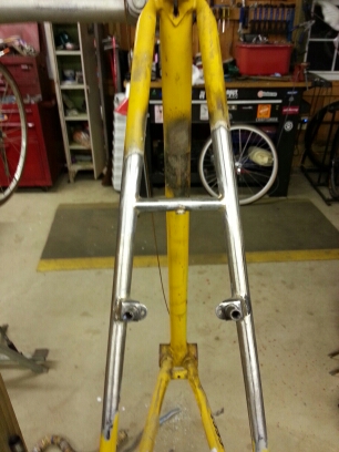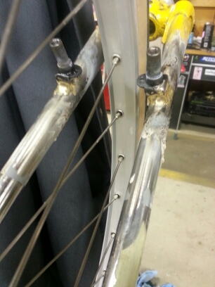 read moreAfter some more practice notching, brazing and cleanup work I put together another fork as the start of my next frame set. Thanks to Dave Bohm for the past critique on my earlier fork attempts. Big take away from his comments - work on the bend and make it more uniform and less "dog leg". I think I got that much better this time and happy with the bender. Used more FLUX per Dave's comments as well!