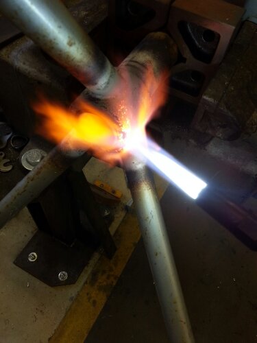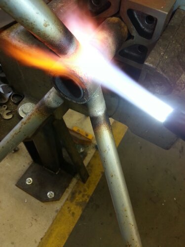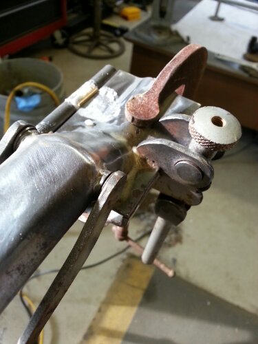 Finished up all the fabrication repair. Brazed the crack in the joint near clamp and brazed the hinge back on the clamp. Also got the adjustable clamp locking mechanism freed up.