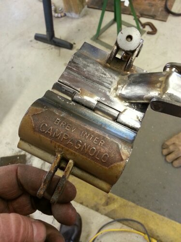Here you go Wayne. I still think the brass one was cooler. This concludes the obscure Campy parts (see previous post for Campy repair stand) day in the shop.