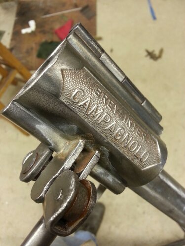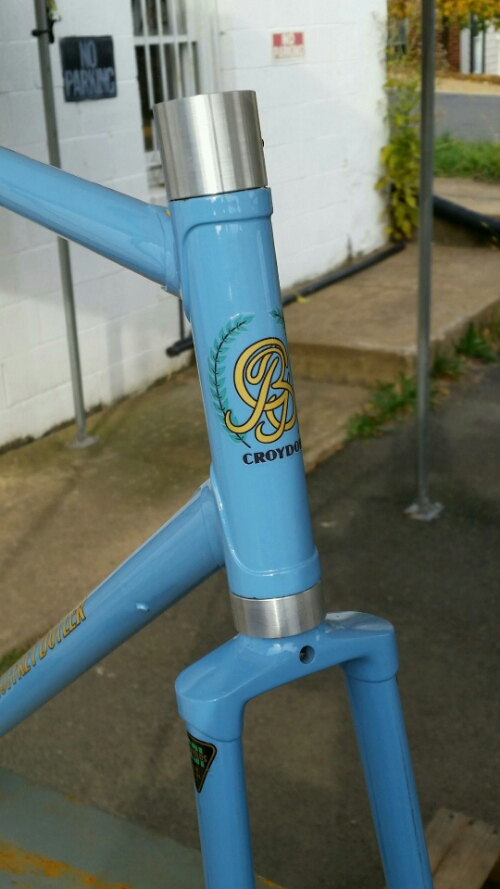 Faux Headset in action...super clean look for display and proper stack size for constructing with (fenders, racks, bars...). Used nylon tipped set screw so not to damage the fork threads.