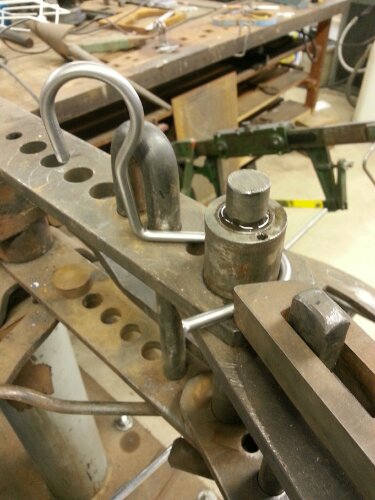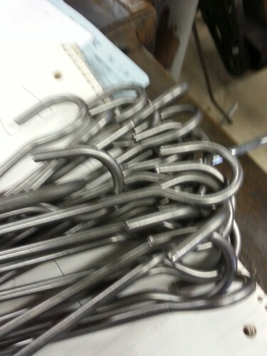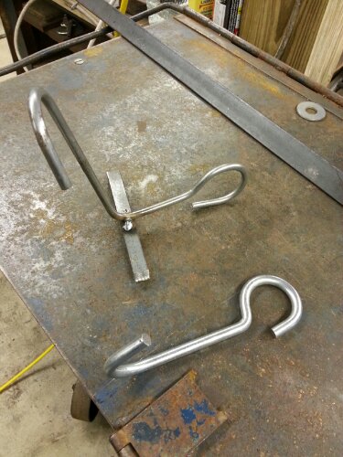 Prototype hooks coming together for bike rack. Drilled holes in the brackets. Continue the hook prototyping this weekend.