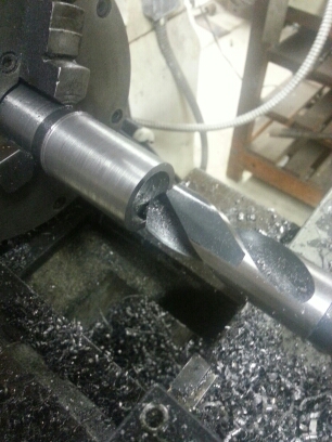 Drilling out rough size for 1" steerer tube. Will use boring bar to finish to size.