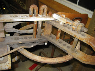 This is a Hossfeld No1 Bender. I already have it's bigger brother the No2 but I found this one at auction and could not pass it by. I may try to see if I can use it for bending bicycle frame tubing and bicycle forks. It being smaller than the No2 I think it might be easier/cheaper to make dies for it.Close up - all necessary parts are with it including the bending yoke and eyelet bender for the top. See [http://www.hossfeldbender.com](http://www.hossfeldbender.com/)/ for details.