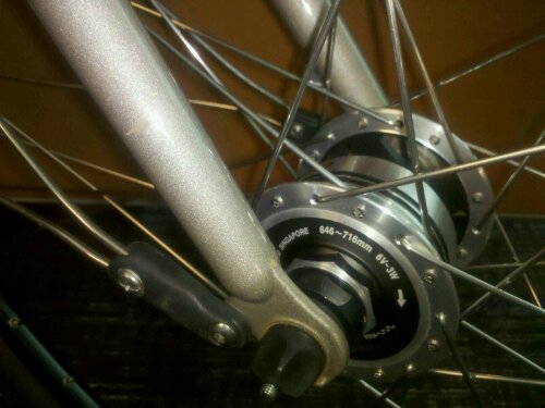 As the days get shorter for my commute I dreaded another season worrying about charging batteries. I took the dyno plunge and wired up the commuter. Have not rode in the dark yet (will get to that tonight) but the ride in was uneventful and the hub is smooth.