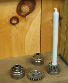In my search for junk (found objects)... I found these great industrial gear mechanisms and they make stunning candlestick holders.
