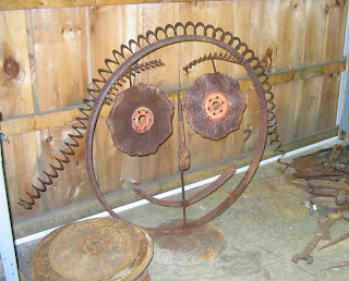"Rosey" was back in the shop this weekend for a hair extension. (Owner whacked her with a lawn mower so I welded it back on). She is one of the first faces I ever made...she still looks great and it was good to get a pic of her before she returns to Bluemont..